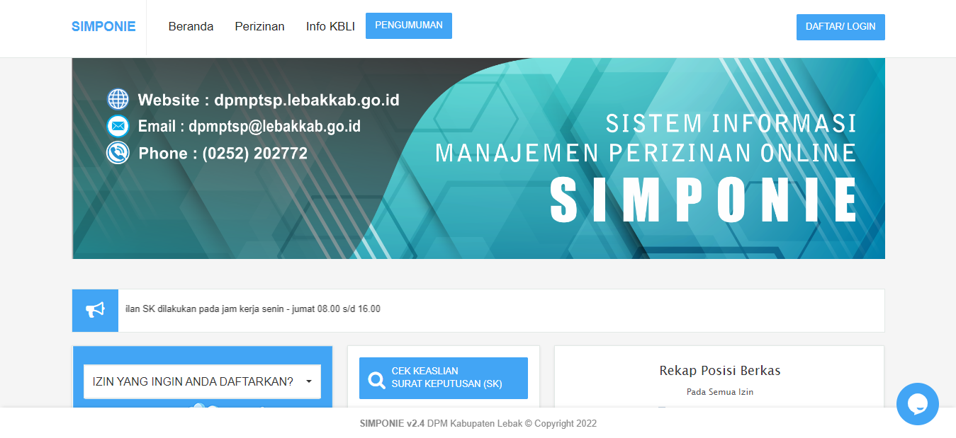 Website DPMPTSP Kabupaten Lebak